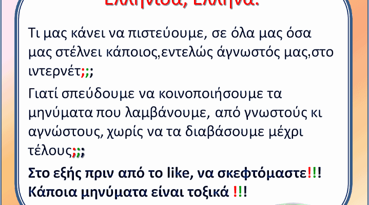 Ελληνίδα, Έλληνα. Τι μας κάνει να πιστεύουμε,σε όλα μας όσα μας στέλνει κάποιος εντελώς άγνωστός μας στο ιντερνέτ;;; Γιατί σπεύδουμε